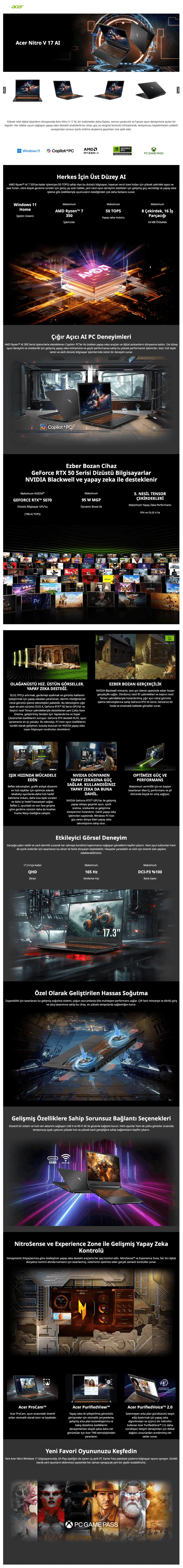 Acer Nitro V 17 AI AMD Ryzen 7-260 16GB 1TB SSD 8GB RTX5070 17.3" QHD 165Hz Freedos NH.QZKEY.001
